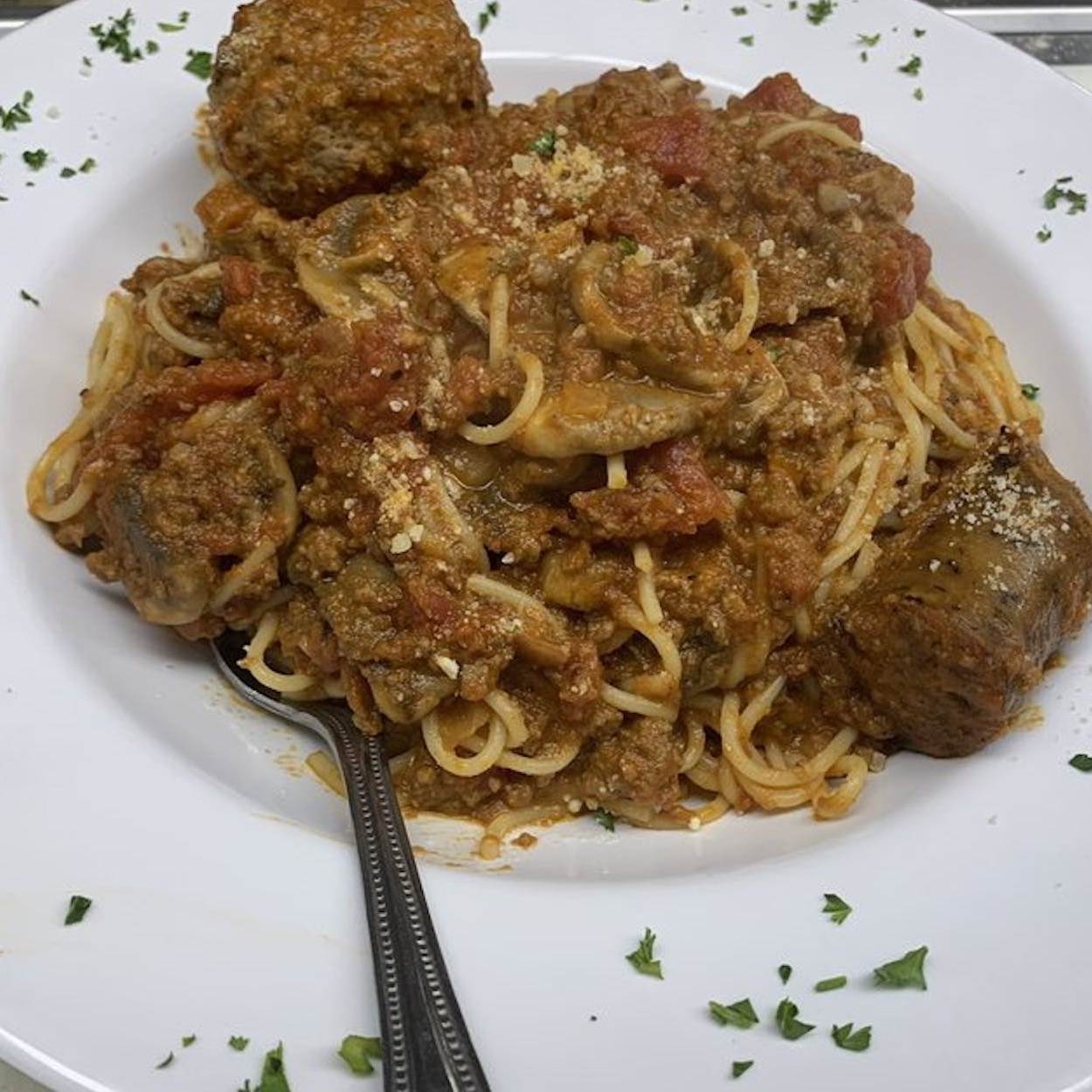 The House Salad from Joe’s Pizza & Pasta includes a mix of fresh lettuce, onions, tomatoes, black olives, and cucumbers. It is priced at $7.99 and can be served with your choice of dressing: Ranch, Bleu Cheese, or Caesar.